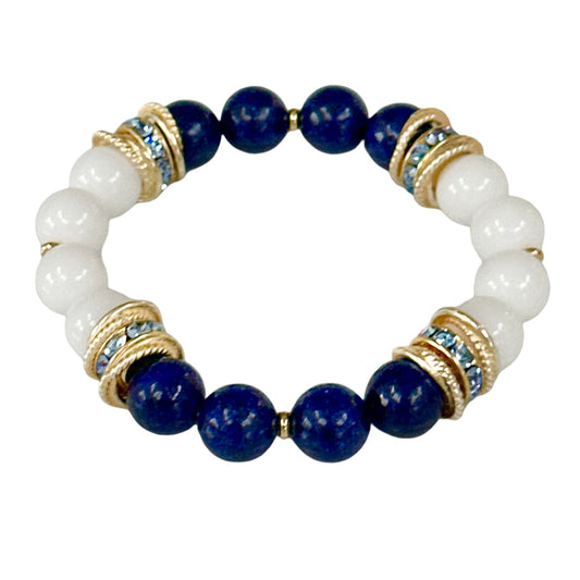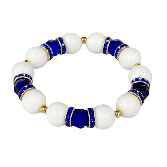 WHITE PORCELAIN AGATE GEMSTONE BANGLE WITH COBALT CRYSTAL ACCENTS