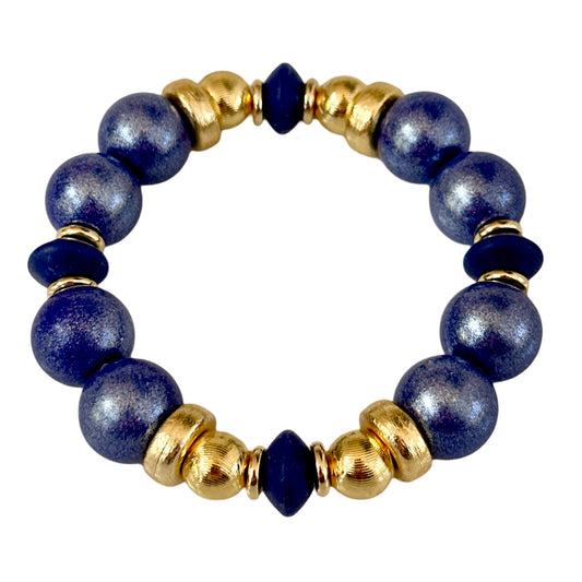 OPALIZED NAVY BLUE BANGLE WITH NAVY AND GOLD ACCENTS