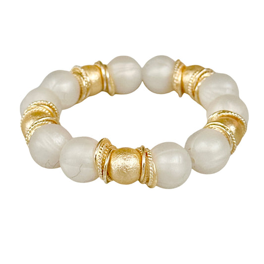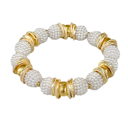WHITE BERRY BEADING BANGLE WITH GOLD ACCENTS