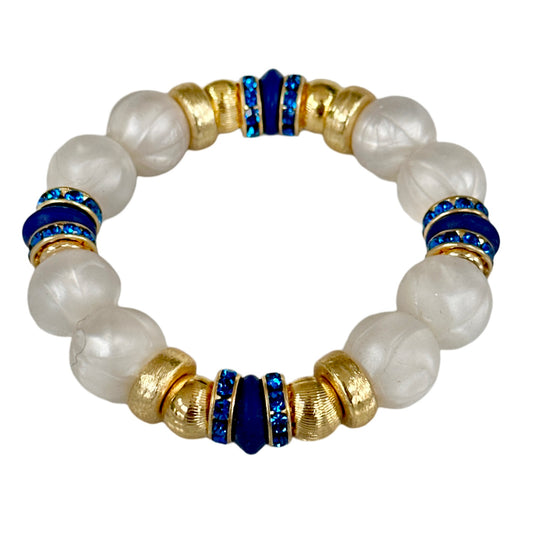 PEARLIZED IVORY BANGLE WITH DARK BLUE AND CZ ACCENTS