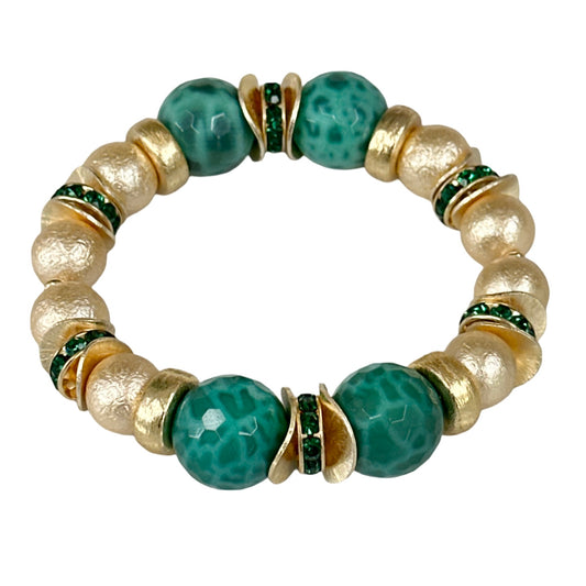 GREEN AGATE GEMSTONE BANGLE WITH GOLD AND CRYSTAL ACCENTS