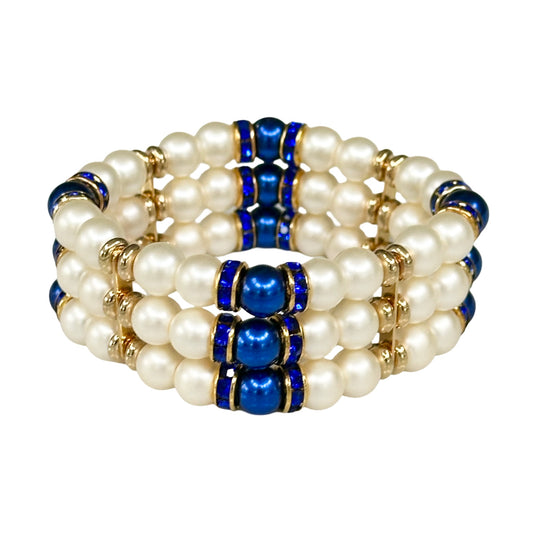 PEARLIZED IVORY BANGLE WITH DARK BLUE AND CZ ACCENTS
