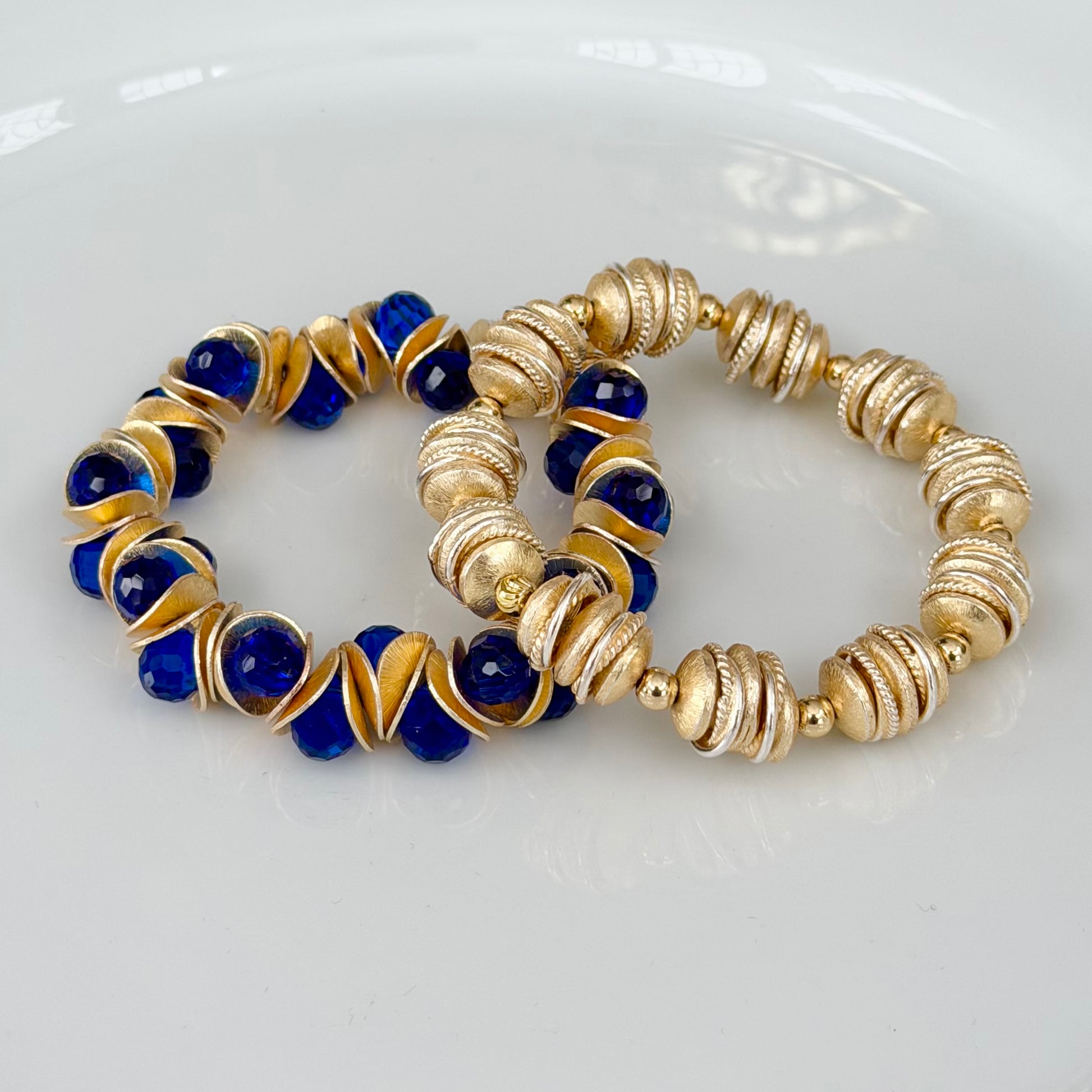 GOLD WAVY DISC AND BLUE FACETED BRIOLETTE BANGLE