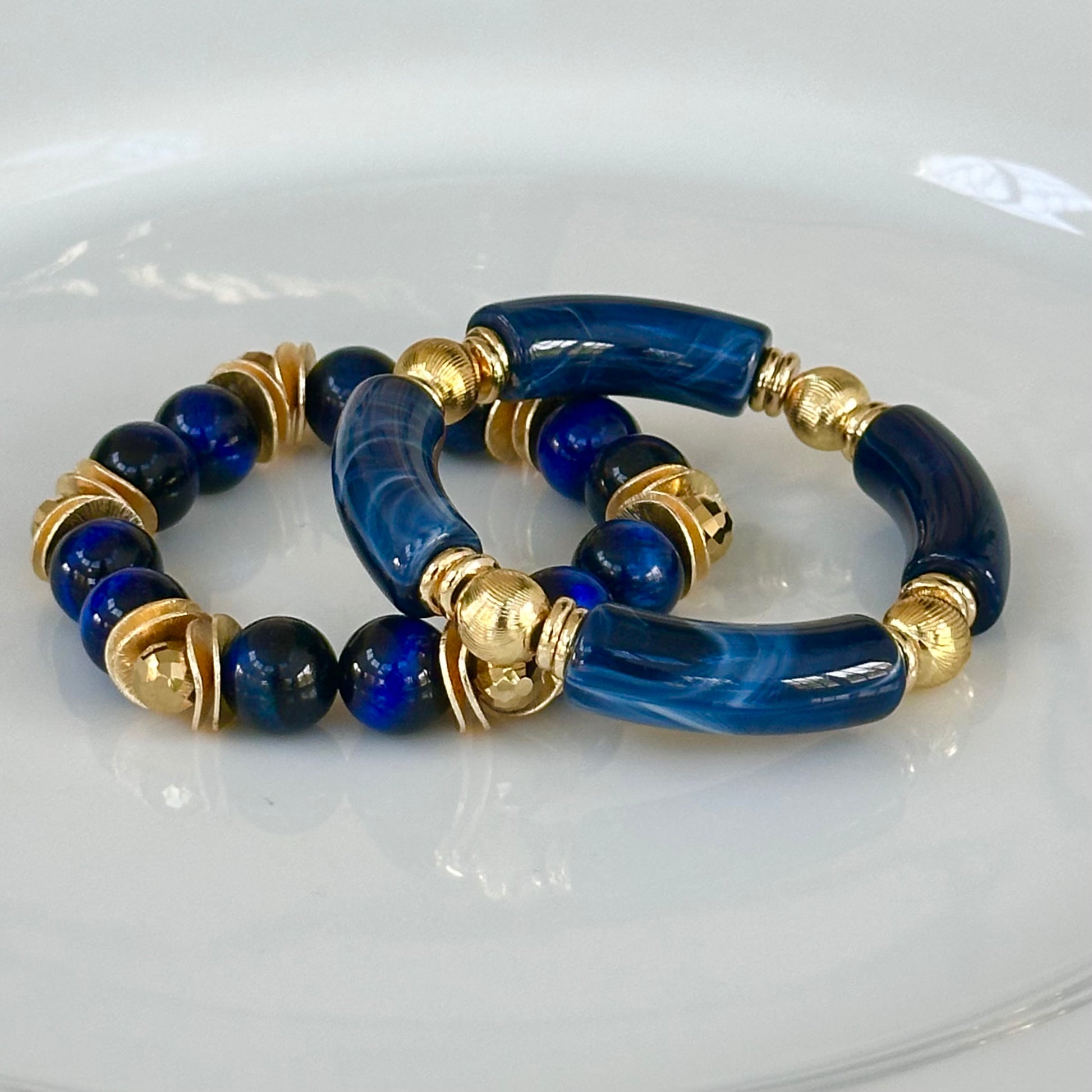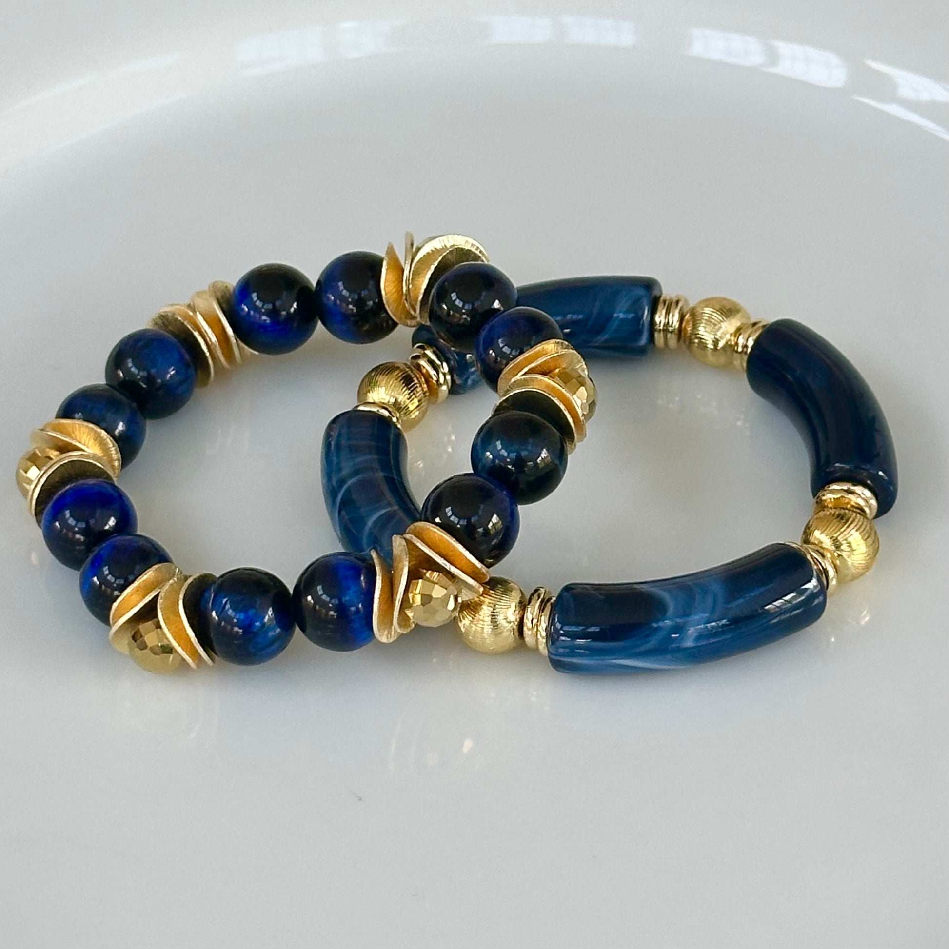 MARBLED NAVY BLUE AND GOLD LINK BRACELET