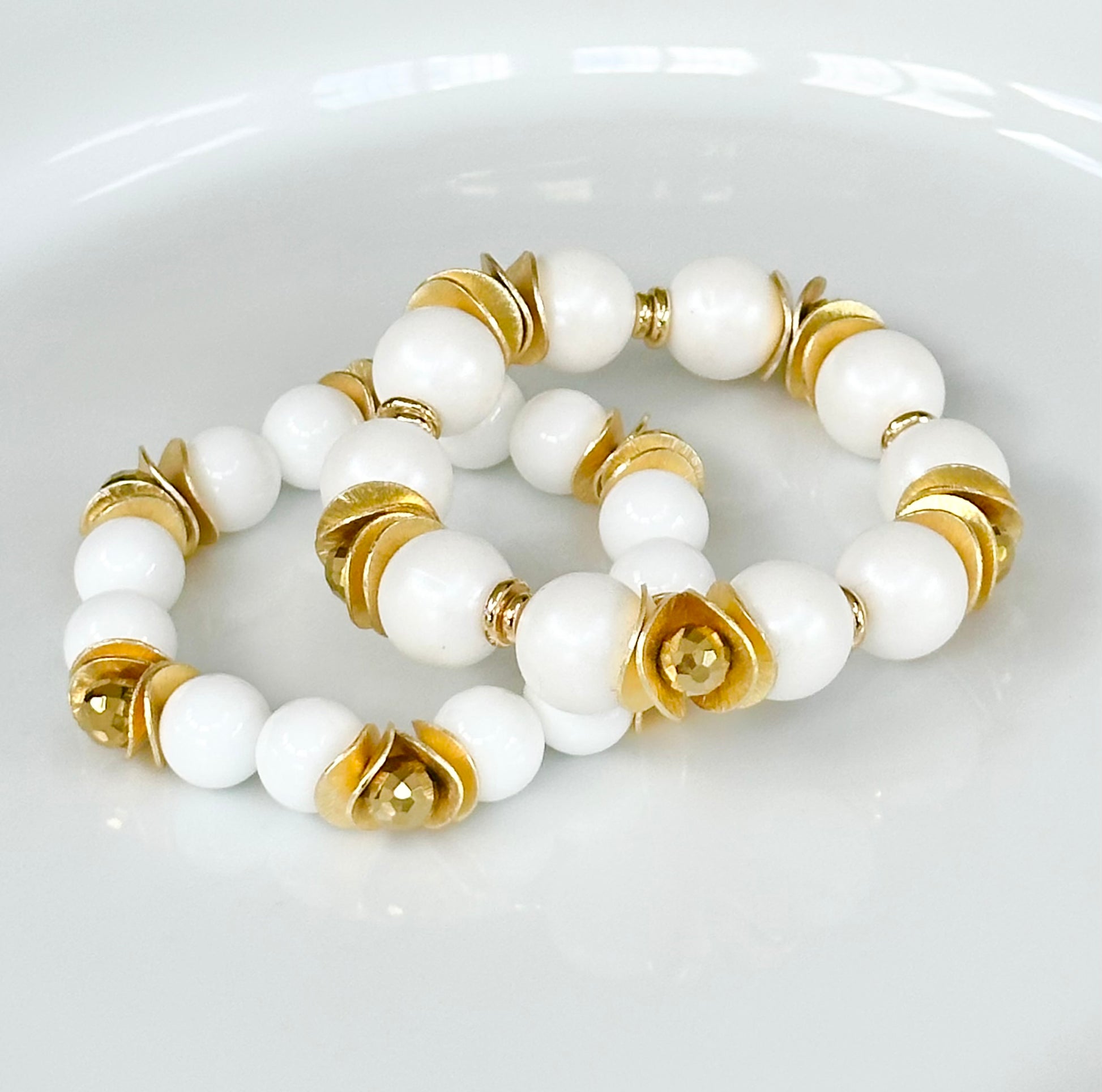 - Gold plated over brass, silicone and acrylic beading.