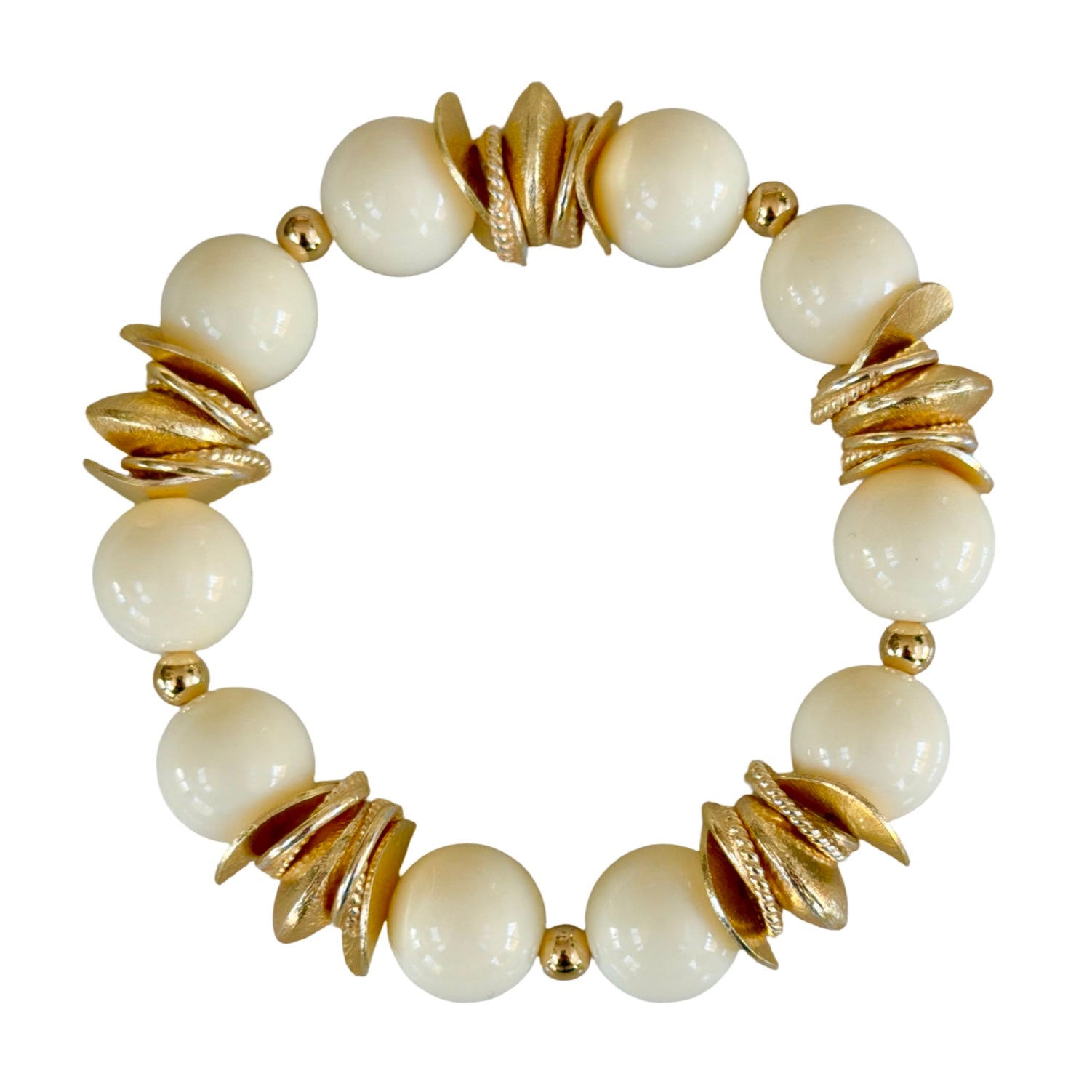IVORY AND GOLD WAVY DISC BANGLE WITH BRUSHED GOLD ACCENTS